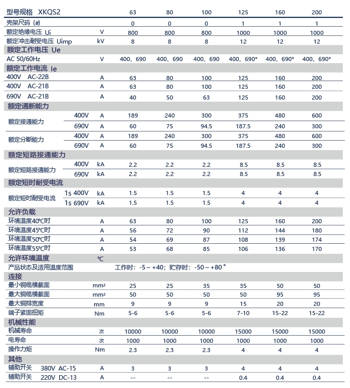XKQS2 可视型隔离开关额定工作电流至1500A,额定工作电压最高至690Vac。可视型隔离开关给用户提供透明上盖(125A~800A),方便客户从可视窗直观了解开关分合状态,体积小巧,可带负荷开断的同时,具有操作简便,发热低等性能特点,为同类产品中的首创。适用于动力箱(柜)进线主开关、电缆分支箱、楼层配电箱等,无需短路、过载保护的场合。开关性能优异。特别适合于污染强度大,环境温度超标的区域。