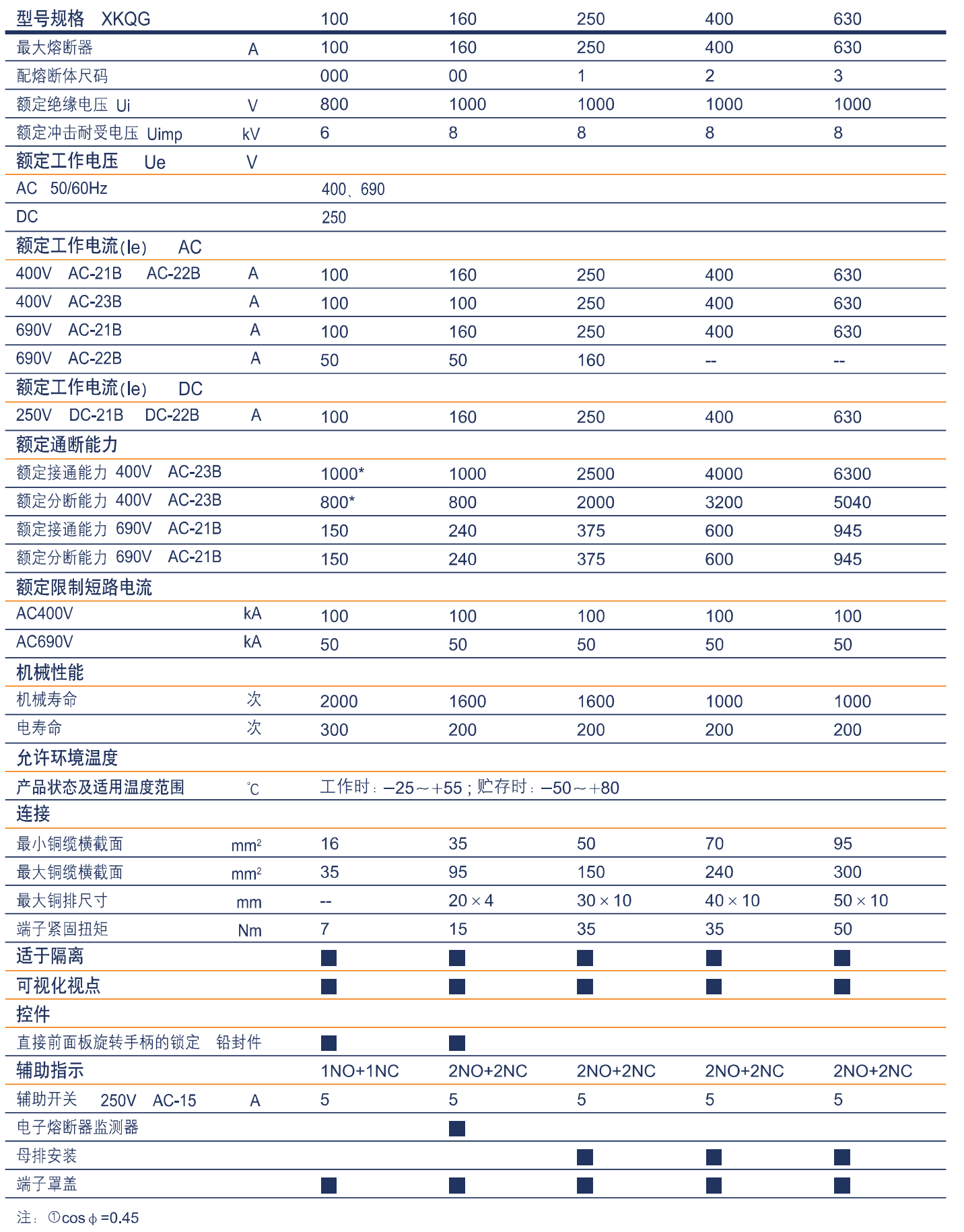 XKQG系列熔断器式隔离开关,适用于交流50Hz,额定电压690V以下,额定工作电流从100-630A。其将控制、隔离以及开关底座的功能集成至一台开关中,能够保护配电电路和电机,可以实现:电路的负载切换(断开和闭合)和隔离以及短路或过载保护。该类型开关工作的速度,与操作者的具体操作情况有关。